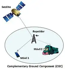 A complementary ground component is a terrestrial infill system for a mobile-satellite service that uses terrestrial base stations to provide connectivity in weak signal areas, such as urban areas.[1] According to EU Decision 626/2008/EC: