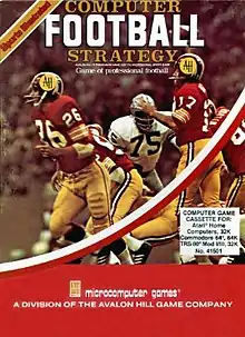 Computer Football Strategy (also known as Football Strategy[2]) is a 1983 computer game that simulates the National Football League from a strategic point of view. It was developed for the Commodore 64[2] and the Atari 8-bit family/[3] Many retired professional football players have been noted to be content while recapturing their former heroics on this computer game.[4]