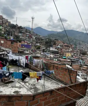 Comuna 13's geography has played a role in how criminal actors took advantage of the commune as a strategic location, using elevation to better survey the movement of police and rival groups.[9] The elevation additionally played a historical role, as Comuna 13 began as a farming community.[10]