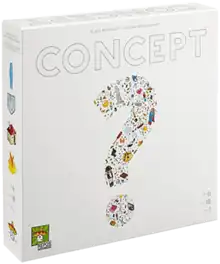 Concept is a guessing game where players have to guess a concept, such as a word, a name, or a phrase. The players who know the target concept provide hints by marking its attributes and attributes of related concepts on the game board with different-coloured markers, while other players guess. Giving verbal hints is not allowed.