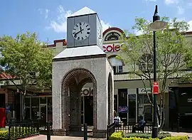 ![]() Clocktower entrance to the "Monica Centre" shopping arcade on Majors Bay Road | |||||||||||||||