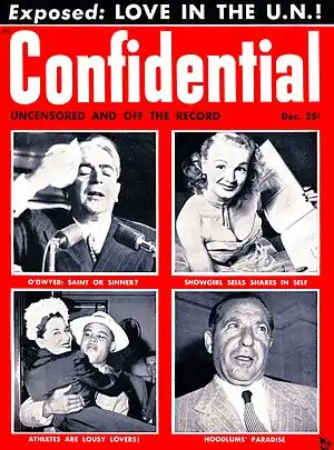 - ↑ Scott, Henry E. (2010). Shocking True Story: The Rise and Fall of Confidential, "America's Most Scandalous Scandal Magazine" (1st reprint ed.). Pantheon. p. 13.