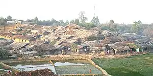 Rohingya refugees arrived in Bangladesh, many of whom had injuries such as bullet wounds, and reported fleeing indiscriminate shootings, rapes, torture and other violent acts against Rohingya civilians[107][108] by mobs of Buddhist Rakhine civilians and Myanmar government forces, including upon whole villages, many of which were burnt down[109] (reportedly some with villagers, even children, confined in the burning structures by their attackers).[107]