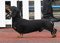 Conformation in dogs refers solely to the externally visible details of a dog's structure and appearance, as defined in detail by each dog breed's written breed standard.[1][2][3] A dog that conforms to most of the items of description in its individual breed standard is said to have good conformation. Unlike equine conformation, there are no fixed rules for dog conformation, as dogs are the most variable in appearance of any animals ("Phenotypic variation among dog breeds, whether it be in size, shape, or behavior, is greater than for any other animal"[4]). Instead, conformation in dogs is based on the dog type from which the breed developed, along with many details that have been added to the breed standard for purposes of differentiation from other breeds, for working reasons, or for enhancing the beauty of the animals from the viewpoint of the fanciers who wrote the breed standards.[5][6]