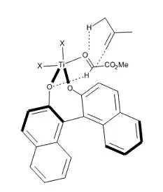 Since both (R)- and (S)-BINOL are commercially available in optically pure form, this asymmetric process allows the synthesis of both enantiomers of α-hydroxy esters and their derivatives. However, this method is only applicable to 1,1-disubstituted olefins, due to the modest Lewis acidity of the titanium-BINOL complex.[14]