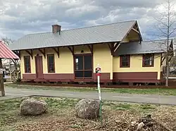 The preserved depot in East Longmeadow, Massachusetts was built by the Connecticut Central Railroad in 1876.
