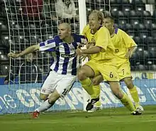 On 15 June 2016, Sammon returned to Scotland for the first time in five-and-a-half years, joining Heart of Midlothian on a three-year contract after negotiating an early exit from Derby.[47] He made his debut on 14 July in the first leg of the second qualifying round of the season's UEFA Europa League, away to Birkirkara in Malta. He started the match, having a goal disallowed for offside before later being substituted for Juanma.[48] A week later, he scored his first goal for the team, heading Arnaud Djoum's cross as they were eliminated in a 2–1 second-leg loss at Tynecastle.[49] Sammon departed Hearts on completion of his contract.[50][51] In all he scored two goals in 23 appearances for Hearts.[52]