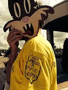 - ↑ У Києві чоловік у масці кролика з автоматом протестував проти русифікації телепростору Archived 25 September 2015 at the Wayback Machine (in Ukrainian). zik. 19 August 2015