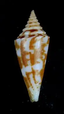 Abapertural view of shell of Conus scalarissimus da Motta, 1988.