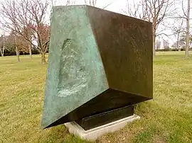 Conversations with Magic Stones (Magic Stone Three) is a public art work by English artist Barbara Hepworth located at the Lynden Sculpture Garden near Milwaukee, Wisconsin.[1] The sculpture is an abstract, modified cube form made of bronze; it is installed on the lawn.[2] Originally, this work was created as part of a multi-part sculpture with two other bronze "magic stones" (eight-sided polyhedrons) and three "figures" (vertical abstract sculptures).[3] One of these other works, Conversations with Magic Stones (Figure Three), is also installed at the Lynden Sculpture Garden.