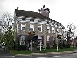It is a 2 1/2 story, Greek Revival style cobblestone building constructed in 1851. It is irregular in plan, featuring four, three-bay wide facades arranged in an arc of less than 90-degrees. Each of the four segments corresponds to an original store space with a wedge shaped floor plan. An unusual hexagonal cupola rises from the center of the roof.[2]