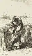 Van Gogh Museum says of Millet's influence on Van Gogh: "Millet's paintings, with their unprecedented depictions of peasants and their labors, mark a turning point in 19th-century art. Before Millet, peasant figures were just one of many elements in picturesque or nostalgic scenes. In Millet's work, individual men and women became heroic and real. Millet was the only major artist of the Barbizon School who was not interested in 'pure' landscape painting."[37]