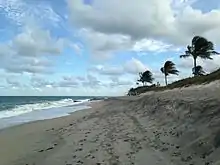 The park, which is almost 15 acres, includes approximately 2,610 feet of beach frontage (most of which is guarded) and 600 feet of intracoastal waterway frontage.[2] The most prominent feature of the beach is the natural limestone, which is part of the Atlantic Coastal Ridge.[3] These rocks, as well as the coral reefs, are inhabited by marine wildlife, including fish, sea turtles, eels, sharks and marine worms.[1][3]