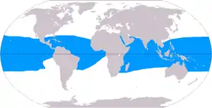 Coral reefs are estimated to cover 284,300 km2 (109,800 sq mi),[58] just under 0.1% of the oceans' surface area. The Indo-Pacific region (including the Red Sea, Indian Ocean, Southeast Asia and the Pacific) account for 91.9% of this total. Southeast Asia accounts for 32.3% of that figure, while the Pacific including Australia accounts for 40.8%. Atlantic and Caribbean coral reefs account for 7.6%.[5]