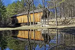 The Corbin Covered Bridge is a wooden covered bridge over the North Branch of the Sugar River on Corbin Road, approximately 1 mile (1.6 km) west of NH 10 in Newport in Sullivan County, New Hampshire, United States.[2] The bridge was listed on the National Register of Historic Places in 1976,[1] but was removed[3] following its destruction by fire in the early hours of May 25, 1993.[4] It has since been reconstructed.