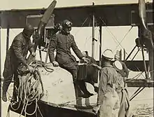 Following the Tampico Affair on 9 April 1914, the United States sent a squadron of warships to Veracruz, Mexico. After first sending three planes to Veracruz aboard the light cruiser USS Birmingham, Lieutenant Commander Mustin took temporary command of Mississippi as her acting captain and led a second aviation detachment, along with 500 United States Marines, aboard her to the campaign. They arrived at Veracruz on the evening of 24 April 1914. The United States occupation of Veracruz marked both the first operational use of naval aircraft and the first time that any U.S. aviator of any service was the target of ground fire.[1] Mississippi began her voyage back to Pensacola on 12 June 1914 to make repairs to the aircraft which had seen continued use without means of maintenance. In July 1914, Mustin took Mississippi to Norfolk, Virginia, to be sold to Greece.
