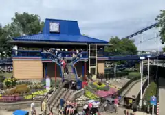 The ride's station is located on the midway next to Super Himalaya and near Power Tower. It was the first coaster to have inversions featuring a walkway underneath.