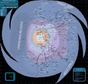 Map of the Star Wars galaxy; Coruscant's XYZ coordinates are designated 0,0,0 and the grid coordinates are L-9.