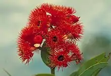 • Corymbia cadophora subsp. pliantha K.D.Hill & L.A.S.Johnson[9][10] has flowers that are deep red or dark pink, between seven and twenty-three groups of flowers for each peduncle, and fruit that are 25–36 mm (0.98–1.42 in) long and 22–26 mm (0.87–1.02 in) wide;[8]