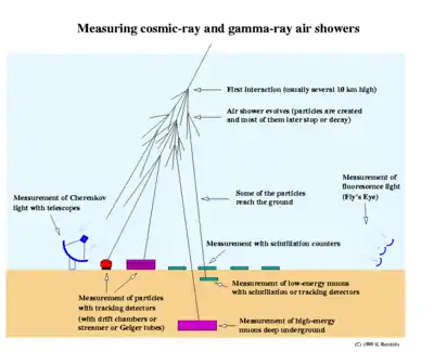 It is not yet possible to build image forming optics for cosmic rays, like a Wolter telescope for lower energy X-rays,[1][2] although some cosmic-ray observatories also look for high energy gamma rays and x-rays. Ultra-high-energy cosmic rays (UHECR) pose further detection problems. One way of learning about cosmic rays is using different detectors to observe aspects of a cosmic ray air shower.