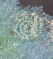 Costasiella ocellifera is a small (5–13 mm) species of sea slug, a shell-less marine gastropod mollusk in the family Costasiellidae.[2] Costasiella ocellifera, and other members of the Costasiellidae family are often mistakenly classified as nudibranchs because they superficially resemble other species of that group, but they are actually a part of the Sacoglossa superorder of sea slugs, also known as the “sap-sucking sea slugs,” "crawling leaves" or the "solar-powered sea slugs."[3] C. ocellifera was discovered by Simroth in 1895, and was initially classified as Doto ocellifera.[4] The Brazilian species, Costasiella liliana, is a synonym of C. ocellifera.[5][6]Costasiella ocellifera shows long-term retention of functional kleptoplasty.[7]