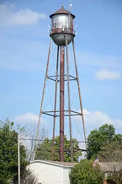 The Cotter water tower is a historic elevated steel water tower located in Cotter, Arkansas. It was constructed in 1935 by the Pittsburgh-Des Moines Steel Company, as part of the development of the local water supply system by the Public Works Administration. The tower was added to the National Register of Historic Places in 2007, as part of a multiple-property listing that included numerous other PWA-era projects in Arkansas, under the heading “An Ambition to Be Preferred: New Deal Recovery Efforts and Architecture in Arkansas, 1933-1943.”[2]