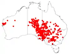 The species occurs in all mainland states and territories apart from the Australian Capital Territory.
