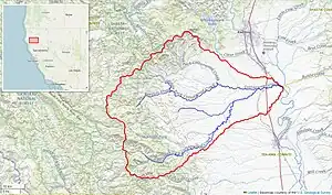 Cottonwood Creek is a major stream and tributary of the Sacramento River in Northern California. About 68 miles (109 km) long measured to its uppermost tributaries, the creek drains a large rural area bounded by the crest of the Coast Ranges, traversing the northwestern Sacramento Valley before emptying into the Sacramento River near the town of Cottonwood. It defines the boundary of Shasta and Tehama counties for its entire length. Because Cottonwood Creek is the largest undammed tributary of the Sacramento River, it is known for its Chinook salmon and steelhead runs.[2]