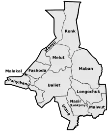 - 1 2 Wël, PaanLuel (2020-02-15). "President Kiir Reinstates 10 States, 79 Counties and Fires all 32 State Governors in South Sudan". PaanLuel Wël Media Ltd - South Sudan. Retrieved 2020-09-13.