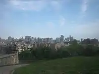 Palisade Avenue is the name given to a historic road which parallels the eastern crest of Hudson Palisades in northeastern New Jersey. It travels between Jersey City and Fort Lee,[1] passing through Jersey City Heights, North Hudson, and Cliffside Park, with various parts carrying Hudson and Bergen county route designations.[2][3][4][5] The avenue re-aligns itself at several places along its route as it crosses traditional municipal boundaries created in the 19th century. As a primary route running along the top of the Hudson Palisades, many segments offer scenic views of the Hudson River and the New York skyline. Since 2020 there is proposed state legislation to restrict building heights that would rise above the cliffs on the eastern side of Palisade Avenue along the entire corridor from Jersey City to Fort Lee.[6][7][1][8]