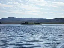 Moray consists of a flattish coastal section, containing the main towns, with a hilly interior, extending into the Grampian Mountains in the far south. Notable features of the coast are Findhorn Bay and the broad arc of Burghead Bay. The coast around Lossiemouth is somewhat rockier, and contains the Covesea Skerries and Halliman Skerries offshore. The chief lochs are Loch Dallas, Loch Noir, the Lochs of Little Benshalag, Loch of the Cowlatt, Lochanan a' Ghiubhais, Loch an Salich, Loch Trevie, Loch Tutach, Loch Allan, Loch Stuart, Loch Mhic Leòid, Loch Ille Mhòr, Lochan Dubh, Loch nan Stuirteag, Loch an t-Sithein and Lochindorb.