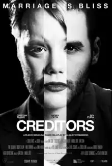 Creditors is a British[1][2] drama film written and directed by Ben Cura, based on the play of the same title by August Strindberg and starring Christian McKay, Andrea Deck, Ben Cura, Tom Bateman and Simon Callow.[3][4] Set in present-day England and Spain in this adaptation, it had its world premiere at the 2015 Nordic International Film Festival in New York City as part of the festival's Official Selection, where it was nominated for and was awarded the Honorable Mention for Best Nordic Narrative Feature.[3][5] The film was a United Kingdom production by London-based company Tough Dance, founded by Ben Cura and Andrea Deck.[6][7] Spanish company Cuibar Productions financed the film.[8] Paris-based sales agents New Morning Films took on world sales of the film in early 2015.[9][10][11] The film is actor Ben Cura's debut as a director, screenwriter, and producer.[12]