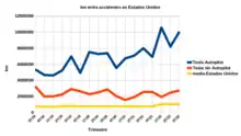 A graph of Tesla's often cited statistic of kilometer per crash