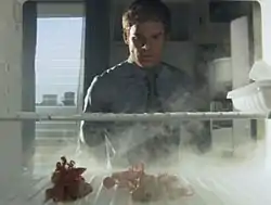 ![]() Dexter opens the fridge to look at his doll parts. | |