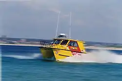 The boat has an operational time of 10 hours, powered by twin 200 horse power Yamaha engines with two 275 litre fuel tanks. The vessel can reach speeds of up to 100k/h. The rear deck of the boat has a clear operational area of about seven square metres, allowing easy access for boat and helicopter rescue crews. See Westpac Life Saver Rescue Helicopter Service. It is no longer operational.
