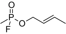 Crotylsarin (CRS) is an extremely toxic organophosphate nerve agent of the G-series.[1] Like other nerve agents, CRS irreversibly inhibits the acetylcholinesterase. However, since the inhibited enzyme ages so rapidly, the inhibited enzyme can't be reactivated by cholinesterase reactivators.[2][3]
