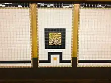 The 2004 artwork here is part of a series called Good Morning and Good Night.[32] It consists of ceramic tiles of the sun and moon on the platform walls.