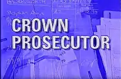 Crown Prosecutor is a British television legal drama series, created and principally written by Nick Collins, first broadcast on BBC1 on 23 February 1995.[1] A single series of ten episodes were broadcast, typically at 8:30pm on Thursdays, with episodes repeatedly on Fridays at 1:50pm as part of the channel's daytime schedule. The series was produced in-house by the BBC under the BBC Worldwide moniker. The series follows ensemble cast of various Crown Prosecutors, who bring cases before local magistrates in the United Kingdom. The series stars Tom Chadbon, David Daker, Deborah Grant, Jessica Stevenson, Paris Jefferson, Shaun Parkes and Michael Praed.[2]