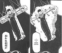 Crucifixions and crucifixes have appeared repeatedly in Japanese manga and anime.[47] In manga iconography, crucifixes serve two purposes: as death symbols, and as symbols of justice.[48] Scholars such as Michael Broderick and Susan J. Napier argue that Japanese readers associate crucifixion imagery with apocalyptic themes, and trace this symbolism to Japanese secular views of the bombings of Hiroshima and Nagasaki, rather than to religious faith.[49] Producers of anime generally deny any religious motivation for depiction of crucifixion.[50][51] Concern that Westerners may find these portrayals of crucifixion offensive has led some distributors and localization studios to remove crucifixion imagery from manga such as Fullmetal Alchemist[46][52] and anime such as Sailor Moon.[53][54]