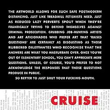 Cruise is the sixteenth studio album by power electronics band Whitehouse, released in 2001 through the band's Susan Lawly label. The album was reissued on double vinyl format through Very Friendly in 2007, and was the first of a series of limited edition vinyl reissues of the band's catalog.