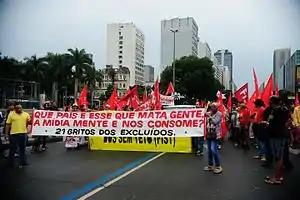 The Cry of the Excluded (Portuguese: Grito dos Excluídos) is a number of popular demonstrations in Brazil held every year during the week of September 7, the Brazilian Independence Day, to ask for attention for the people that are excluded of all what makes life worth as a human being.[1][2][3]