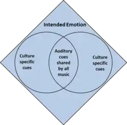 The cue-redundancy model of emotion recognition in music differentiates between universal, structural auditory cues and culturally bound, learned auditory cues (see schematic below).[2][3]