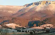 There are a number of large cliff systems in the park, the most prominent of which is the 500 feet (150 m) cliffs of White Rocks, located in the eastern portion of the area.[6]: 34 [10] At the northeastern end, the park sits adjacent to the Sillalah Creek Wildlife Management Area and the Martin's Fork Wildlife Management Area and State Natural Area.[11][6]: 27