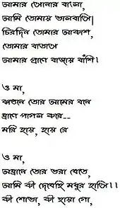 Half of the National Anthem of Bangladesh, written in cursive Bengali
