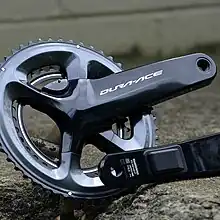 A cycling power meter is a device on a bicycle that measures the power output of the rider. Most cycling power meters use strain gauges to measure torque applied, and when combined with angular velocity, calculate power.[1]