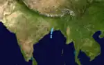 Severe Cyclonic Storm Twelve developed on November 26. It was the strongest tropical cyclone of the season, peaking with winds of 140 km/h (85 mph). The system dissipated on November 29.[17] The storm moved from east to west and made a Tropical Storm-equivalent landfall on eastern India.