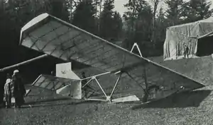 The CWJ first flew in October 1931, tow-launched by a car.[2] An improved version, the CWJ-bis Skaut (Scout) made its first flight on 3 August 1933 at Czerwony Kamień, the base of the Lwów Aeroclub Gliding School. It had a wing increased in span by 900 mm (35 in), a corresponding 11% increase in wing area and had washout at the wingtips which improved aileron response. The wire wing bracing of the CWJ was replaced by pairs of parallel struts and the fuselage box was strengthened. The empennage was also modified; the fin now had a triangular, rather than straight, leading edge and at some later time the top of the rudder was made almost semi-circular. Early tests showed the sought-after improvement in handling.[1][3]