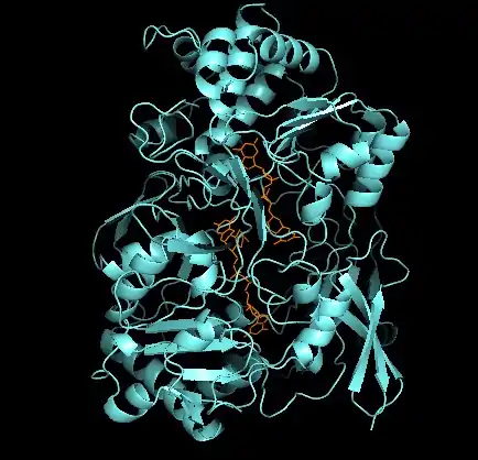 - ↑ PDB: 4DMR; McAlpine AS, McEwan AG, Bailey S (January 1998). "The high resolution crystal structure of DMSO reductase in complex with DMSO". Journal of Molecular Biology. 275 (4): 613–23. doi:10.1006/jmbi.1997.1513. PMID 9466935.