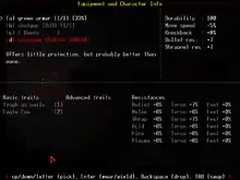 DRL is turn-based, offers a top-down interface formed entirely of ASCII characters, and features a character leveling system with traits. As it is based upon Doom, the game is more fast-paced and combat-oriented than usual for a roguelike, and relies heavily on ranged rather than melee combat. A limited player inventory, non-stackable items, and other design choices contrast with the often extreme intricacy of games in its genre.