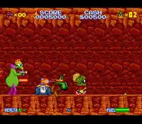 Shrinking rays and crushing platforms are commonly seen as the player tries to kill Martians that are standing in the way along with rock monsters and dragons. Lava won't instantly kill the player's character but falling into a bottomless pit will. In the end, Marvin the Martian must be destroyed in the final stage of the game.